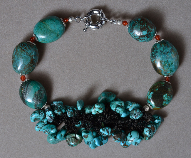 ![]() Supersize Spiderweb turquoise 19 to 21mm long ovals and chips make up this 9 inch bracelet. |