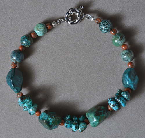 Turquoise beads bracelet Catalog 2398 9.25 in. 9.5mm rounds 15 to 18mm long faceted nuggets 137 carats $32 |