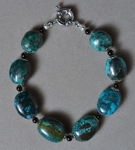 ![]() Supersize Bracelet from blue turquoise ovals with 4mm black spacers. |