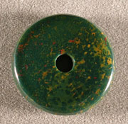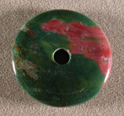 Bloodstone disc bead (donut) Catalog 1152 35.4 x 5.7mm 55 ct. $8(SOLD) |