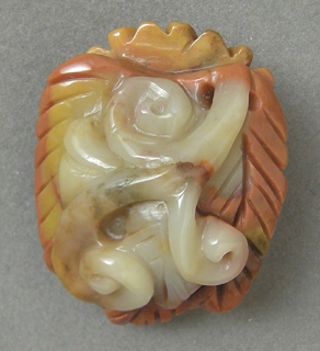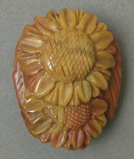 ![]() Carving of sunflowers from red, yellow and white agate with loop for pendant at top right in second picture. |