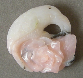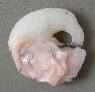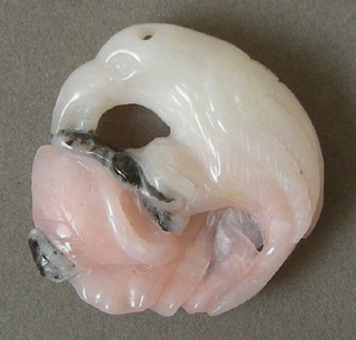 ![]() | Peruvian pink opal carved bird pendant drilled at top in picture. |