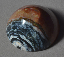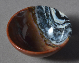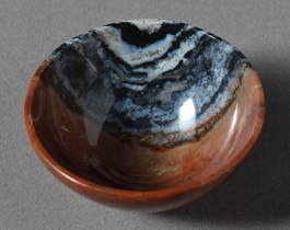 Small carved offering type bowl from blue, white and red suleiman agate. |