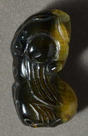 This small animal carving from tiger eye is called a tiger dragon but it resembles a lap dog. |