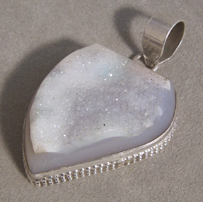 Brazilian agate druzy pendant Catalog 6953 1 cabochon and silver bezel 37 x 32 x 10mm 125 carats total $23 |
